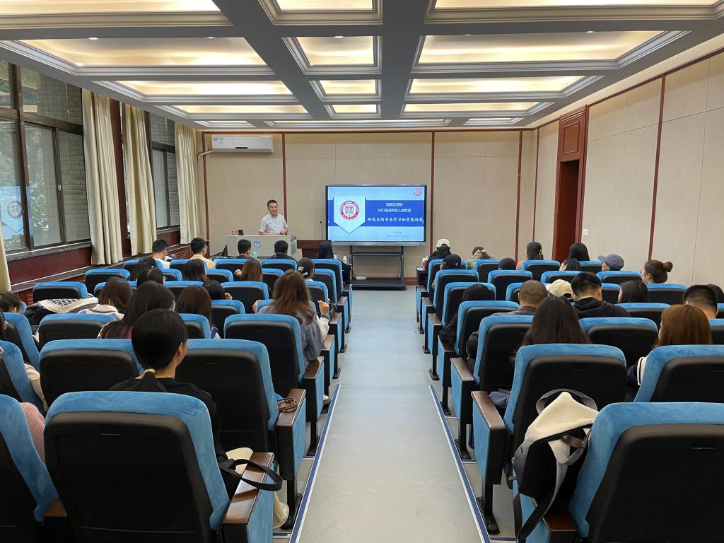 在学院一层报告厅举行了第三场入学教育系列活动,主题为“研究生的专业学习与学能培养”。本次讲座由副院长贾泽林主讲,由团总支书记兼研究生辅导员朱红楠主持。