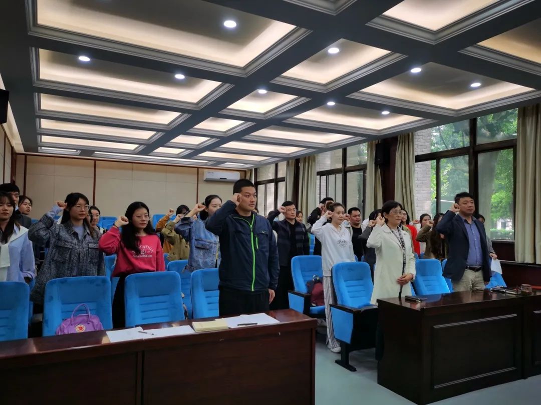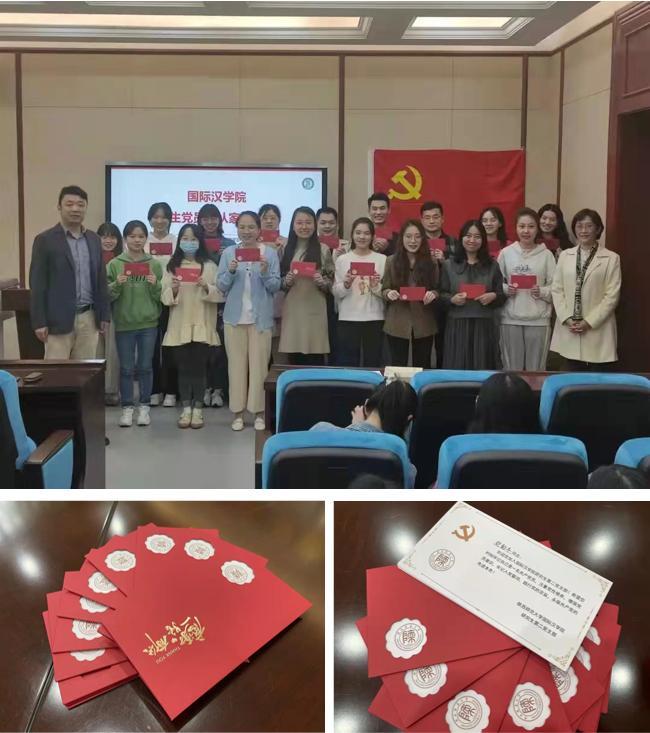 接着,马兰和张昊为新生党员颁发“党员认家卡”。在第二党支部组织委员韩鹏帅的带领下,全体党员重温入党誓词,重忆入党初心。随后,与会党员共同观看了《延安·青年》视频,回顾了那段艰苦卓越的革命历程,受到了革命精神的洗礼。