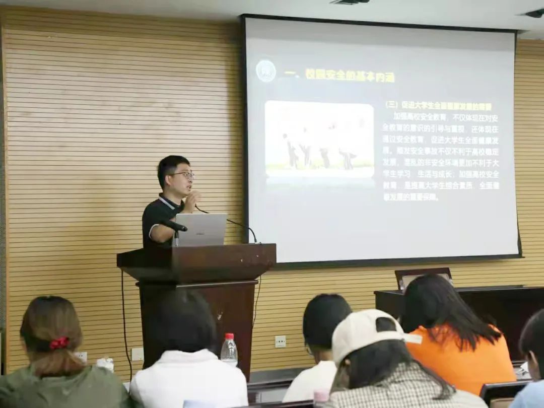 2021级研究生新生入学教育系列活动第一场在崇鋈楼二层思齐堂举行。本次报告邀请学校党委保卫部副部长张冲主讲,主题为校园安全的主要内容及重要意义。报告由研究生辅导员朱红楠主持,2021级全体研究生新生参加了此次活动。