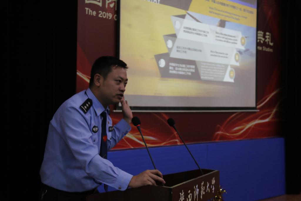 会后,来自西安市公安局出入境管理处的警官代表为全体留学生新生做了中国法律法规及留学生安全教育。