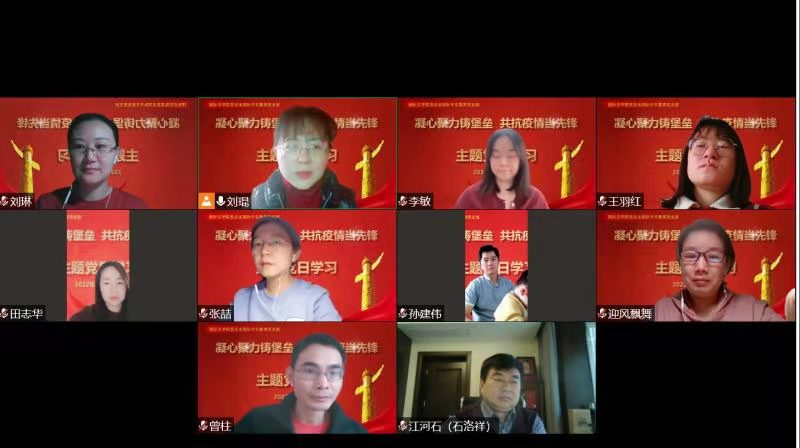面对近期突如其来波及全省的新冠疫情,为发挥基层教师党组织战斗堡垒作用,增强支部凝聚力和战斗力,2022年1月5日上午,国际中文教育党支部党员相聚云端,在线召开了以“凝心聚力铸堡垒,共抗疫情当先锋”为主题的党日学习活动。活动由支部书记刘琨主持,国际中文教育支部全体党员参加了此次活动。