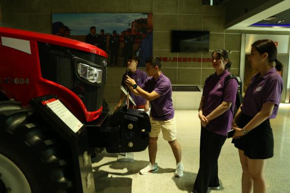 7月23日上午,实践团队前往中国一拖东方红工业游景区,重点参观了东方红农耕博物馆并进行了以“一拖农机制造”为主题的研学活动。中国第一拖拉机厂(简称“一拖”)是中国机械工业、农机工业的长子,在中国制造史上发挥了极其重要的作用。一走进东方红农耕博物馆,中外学生便被陈列的东方红LX1064拖拉机吸引了注意力。东方红LX系列拖拉机是中国一拖东方红拖拉机中最具有代表性的产品之一,彰显了中国一拖在我国农业现代化进程中发挥的重要作用。