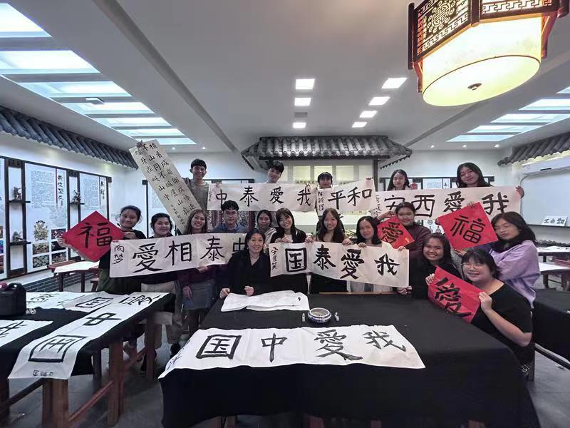举行,该项目圆满落下帷幕。在为期近三周的中文研修交流中,来自泰国孔敬大学的21名学员以插班学习的方式,通过内容丰富、形式多样的语言文化课程和外出实践活动,更快融入语言学习环境,提升了中文水平。同时中国书法、西安历史文化等特色文化课程及游学活动也让学员了解了更多西安的历史文化和中华优秀传统文化。