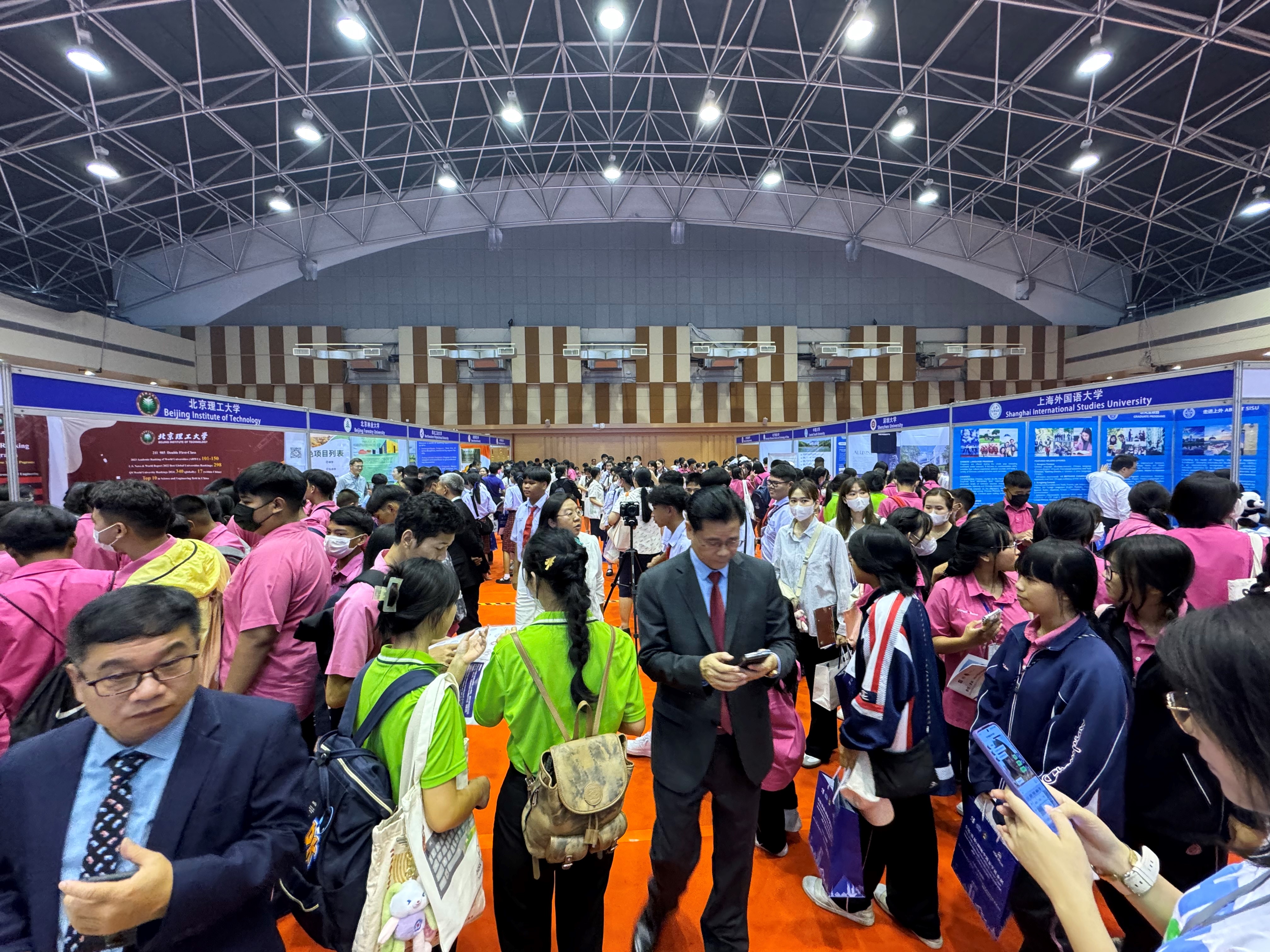 及清华大学、北京大学、山东大学在内的24所国内院校参加,共吸引近7000名来自印度尼西亚、泰国的HSK考生、中文学习者、家长及社会各界人士观展咨询。展会受到新华社、人民网、中国新闻网等多家媒体关注和报道。