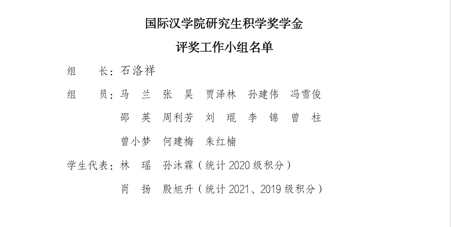 1.学院成立积学奖学金评奖工作小组,由院长任组长,主管研究生培养工作的副院长、主管研究生教育管理工作的处级干部、研究生导师(所占比例不低于评审委员会成员总数的50%)、研究生辅导员、研究生教学秘书、学生代表等任组员。